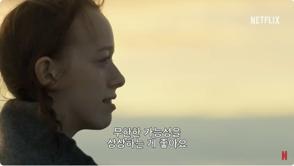 마지막으로 소개 드리는 작품은 원작이 너무나도 유명한 빨강 머리 앤입니다. 한국에서는 애니메이션으로도 많이 알려진 작품이기도 합니다. 원작이 워낙 유명한 작품이라 넷플릭스에서도 놓치지 않은 것 같습니다. 넷플릭스가 제작한 빨강 머리 앤 속의 '앤'은 마치 소설 속의 앤을 그대로 끄집어 내 놓은 것 마냥 우리가 상상한 바로 그 앤입니다. 누가 봐도 그냥 딱 앤인 것이죠.^^ 먼저 제작된 빨강 머리 앤 애니메이션에도 어느 정도 영향을 받았겠지만, 소설 속 빨간 머리 앤에 대한 묘사가 매우 구체적이기 때문에 드라마 속의 앤은 우리가 상상했던 앤과 상당히 닮아 있다고 느끼게 될 것 같습니다.