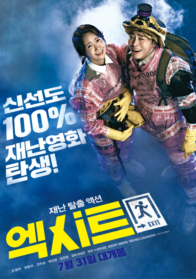 엑시트는 도심에서 발생한 화학 테러로 사람들의 생명이 위협받는 가운데, 평범한 대학생이었던 용남(조정석)과 그의 전 직장 선배인 희주(임윤아)가 벌이는 사투를 그린 영화입니다. 두 사람은 위기 상황을 벗어나기, 절체절명의 순간을 넘기며 웃음을 자아내는 액션을 펼칩니다.